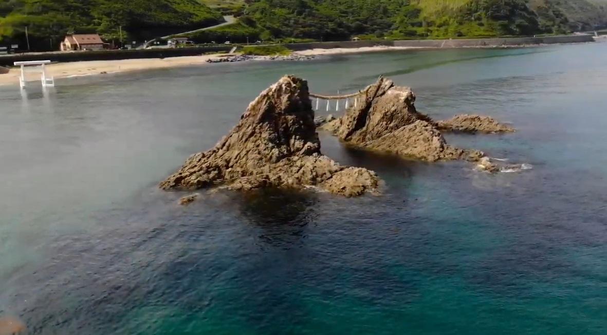 Bien évidemment, vous n'avez pas fait la route jusqu'au Japon pour seulement manger et boire. Le pays regorge de lieux magnifiques et uniques. On trouve au nord-ouest de Fukuoka un endroit assez singulier au bord de l'eau. Devant un torii blanc, deux rochers situés à 150m environ sont reliés par le shimenawa, une corde torsadée de 30m pesant une tonne, comme on peut en trouver à l'entrée de temple. Sa présence signifie que l'endroit est sacré. On dit ici des deux rochers qu'ils sont mariés. C'est un des plus beaux endroits pour voir le coucher de soleil au Japon.
