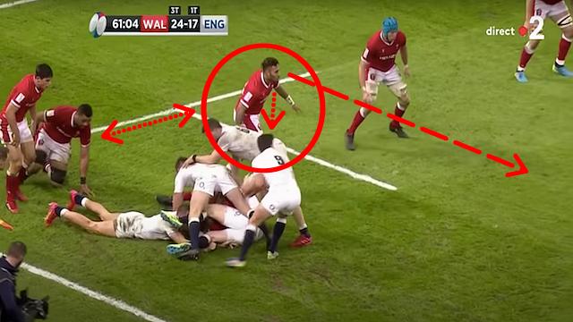 Fidèles du 6 Nations dans son intégralité, il ne vous aura certainement pas échappé également que face aux Gallois, l'Angleterre avait également marqué sur valise de Ben Youngs (oui, c'est encore possible) en bordure de ruck. Malgré leur match référence depuis le dernier Mondial ce jour-là, voici la preuve que ce n'était pas non plus une partition parfaite, loin s'en faut. Et les Bleus doivent également s'en inspirer. Car si cet essai de Youngs a marqué d'une pierre blanche cette partie, il n'a fait que conforter l'impression générale donnée par les hommes en rouge depuis le début de la compétition, à savoir que s'ils sont généralement très efficaces sur l'homme en défense, ils ont également tendance à être relativement peu vigilants autour des rucks.