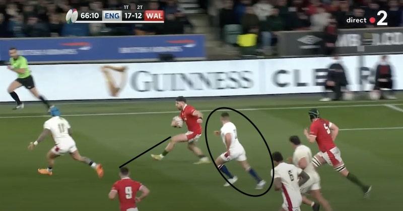 Tournoi des 6 Nations. Pays de Galles. Comment le ''vieux'' Cuthbert a écarté le jeune Rees-Zammit ?Il en va de même pour cette seconde situation. Encore une fois, les Gallois récupèrent un excellent ballon à exploiter sur les extérieurs. Cuthbert est rapidement trouvé et défie le rideau anglais. Ce dernier joue son duel avec Nowell, mais renonce encore une fois à le prendre extérieur, malgré l'espace disponible. Au lieu de ça, le Gallois rentre sa course et attaque l'épaule intérieure de son vis-à-vis. Malheureusement pour lui, Ben Youngs couvrait, et le plaqua au sol, ce qui permit à Jack Nowell de gratter le ballon, et de récupérer une pénalité.